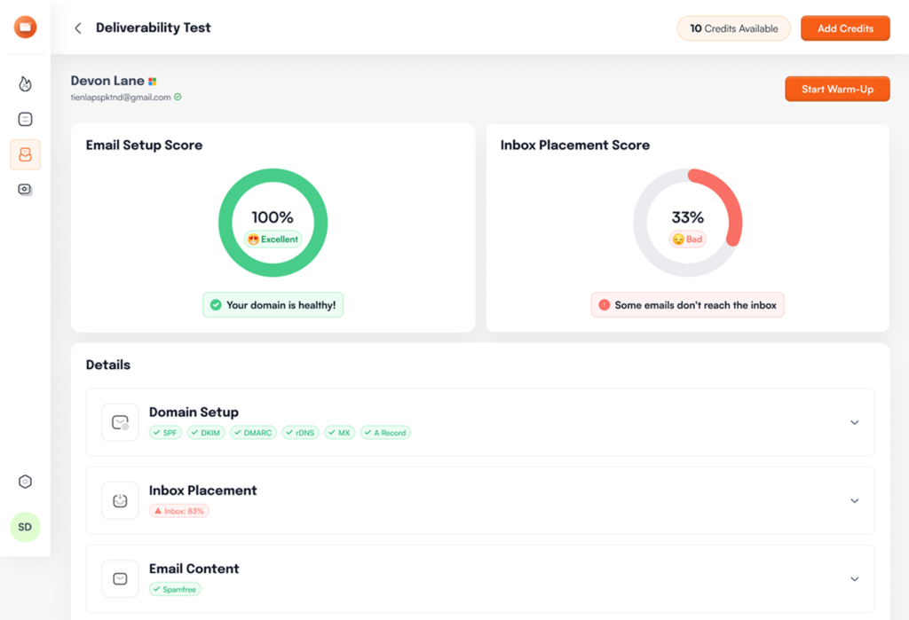 Get your emails tested across major ESPs and shows you exactly how many land in Primary, Promotions, or Spam. Monitor your sending domains against global blacklists and provides a domain setup score to ensure everything is configured correctly.