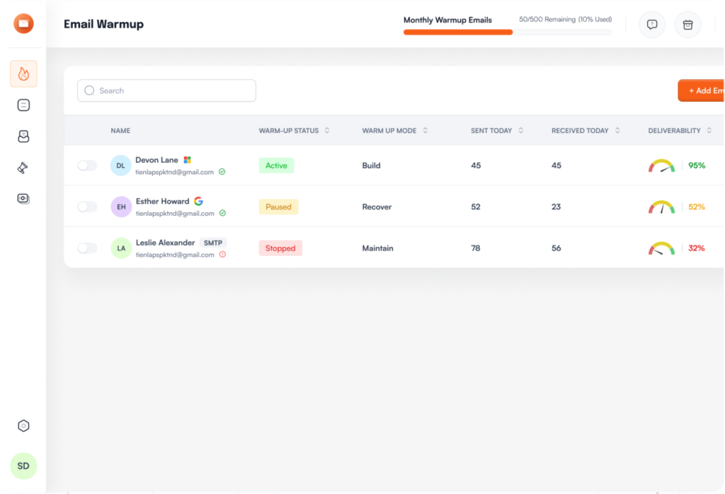 Enable warmup and leave it on us. We’ll take your email deliverability to next level.
